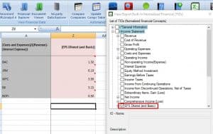 XBRLAnalyst in Excel allows you to return as many as available financial data in SEC database. With this feature, cumulative reporting periods can be easily retrieved and used for analysis. By combining various TIDs from Normalized Financials, we then returned all financial values related to revenue and expenses to create our required efficiency ratio. These TIDs are robust financial metrics which an be used to build simple and compound formulas in excel: