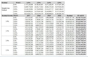 And since the article is suggesting to invest on this stock now, we also calculated residual growth and present value of its future cash flows. As shown on below table, we set some residual growth percentage using the results we generated from our WACC and DCF computations: